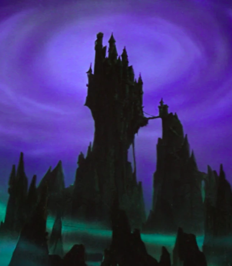 There is also another castle pictured in this concept art. While this castle is not as easy to identify as Maleficent’s castle is, it could be the Evil Queen’s castle because of the gothic appearance.
